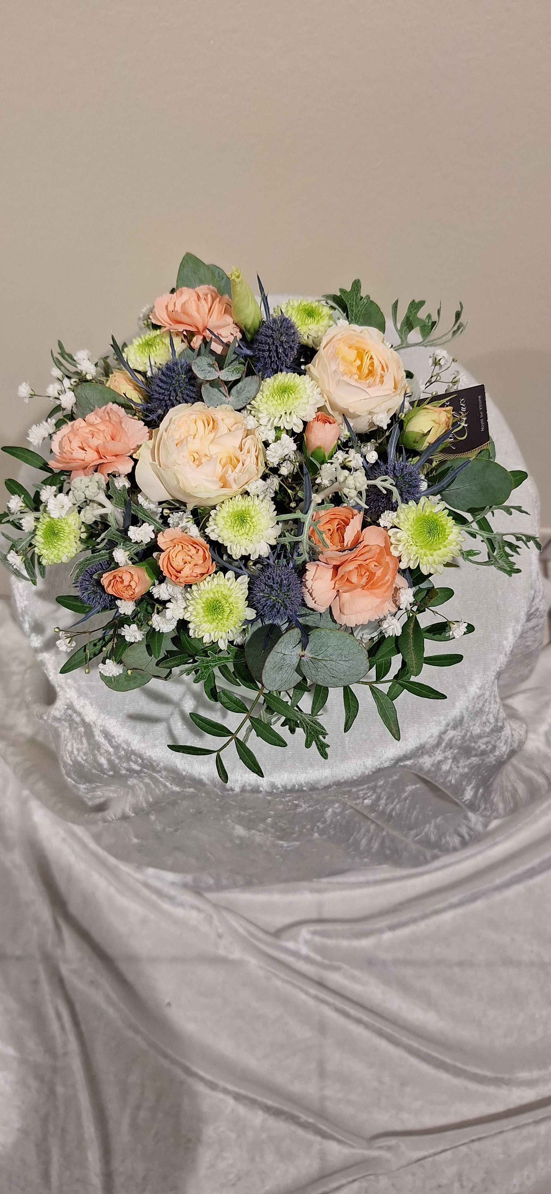 Bouquets ronds, centres de table, décorations de mariage ou hommages floraux… Chaque création est réalisée dans l’atelier de la boutique, avec une attention particulière portée aux couleurs, aux textures et à l’harmonie d’ensemble.
